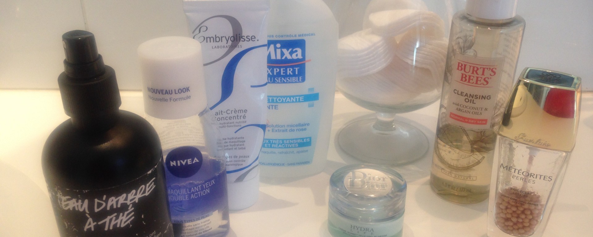 Le soir, je démaquille les yeux avec un produit adapté, une huile démaquillante que je rince à l’eau micellaire et je termine par un spray d’eau d’arbre à thé. J’aime bien la gelée démaquillante Mixa, fraîche et apaisante en été, sinon La Roche Posay ou éventuellement Nivea. Côté huile, la Lierac est top, la Mixa est correcte et vraiment pas chère mais mon coup coeur reste l’huile de Burt’s Bee à l’argan et à la noix de coco, un vrai plaisir été comme hiver hyper fluide et hydratante. Je rince l’huile avec une eau micellaire, la Mixa à la rose sent bon et ne coûte pas cher sinon Bioderma ou La Roche Posay sont tops. Et pour finir (vous l’aurez deviné si vous avez lu chaque mot de cet article passionnant), un coup d’arbre à thé ! Inutile de dire que j’hydrate avec le trio gagnant : sérum, crême et contour des yeux.