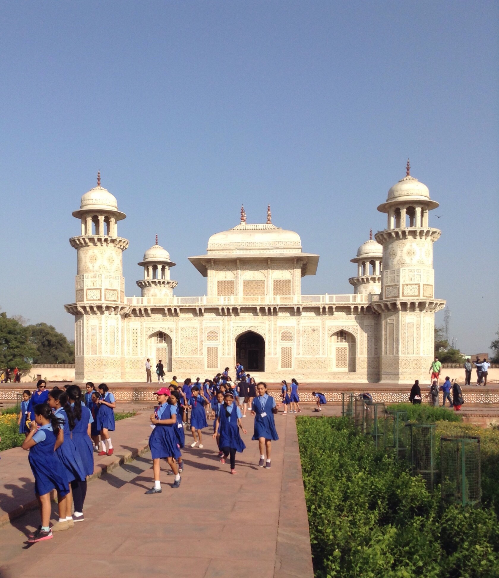 Les sourires et les uniformes bleu d’une école de filles indiennes au Baby Taj